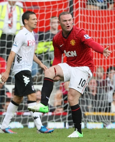 | Rooney gặp phải vết rách ở đùi khi M.U gặp Fulham. Ở trận này, Quỷ đỏ giành chiến thắng 3-2. |