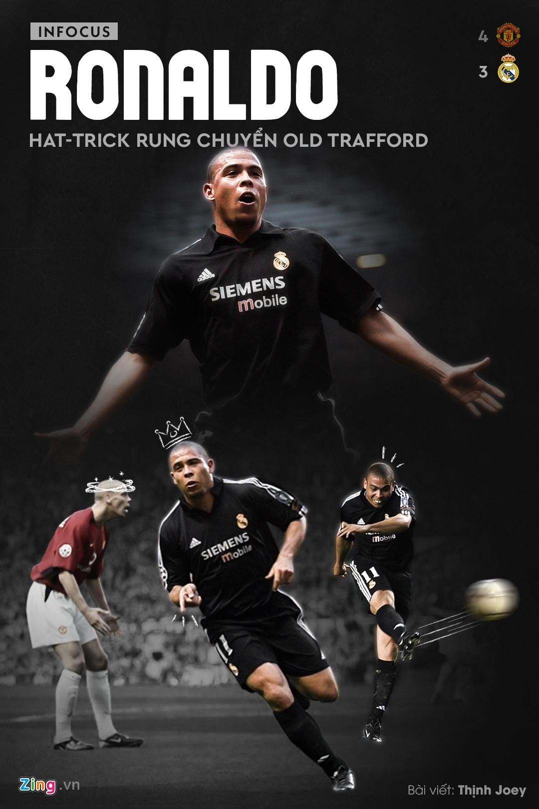 Ngày 22/4/2003 - bốn tháng trước ngày CR7 lần đầu đặt chân tới "Nhà hát của những giấc mơ" - một Ronaldo khác đã khiến cả thế giới bóng đá thán phục với cú hat-trick vào chính mành lưới Manchester United.
