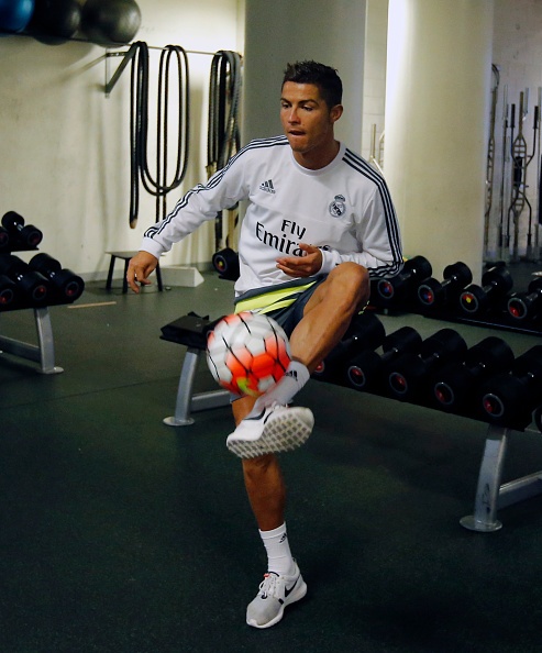 | Cristiano Ronaldo luôn thể hiện tinh thần tích cực trong các buổi tập luyện với bóng. |