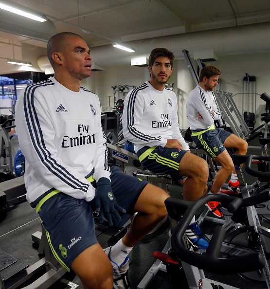 | Bên cạnh việc thực hiện các bài tập trong phòng thể lực, các cầu thủ Real Madrid ra sân thực hiện những pha phối hợp chiến thuật. |