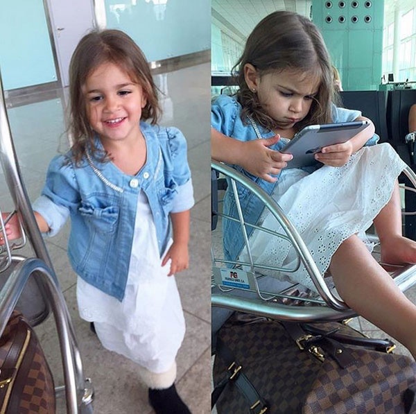 | Daniella Semaan, bạn gái Fabregas, chia sẻ ảnh con gái đáng yêu tại sân bay. |
