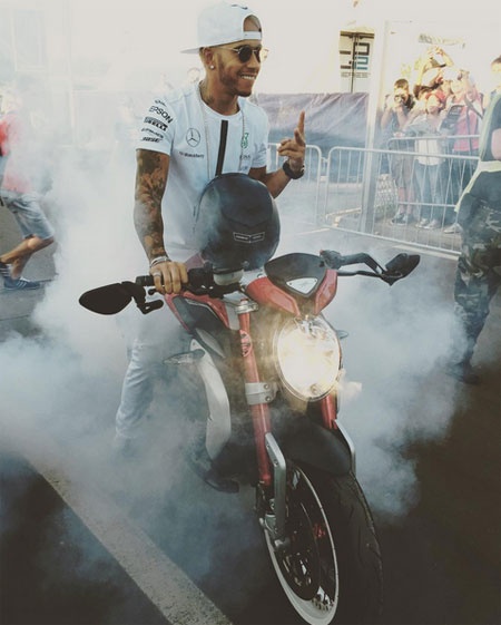 | Tay đua F1 Hamilton lại nghịch ngợm cưỡi "ngựa sắt" dạo phố. |