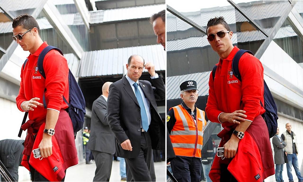 | Siêu sao Bồ Đào Nha sành điệu tại sân bay. Trong trận đấu lượt về này. Ronaldo được kỳ vọng là người đem lại chiến thắng cho đội tuyển Bồ Đào Nha để giành tấm vé bước vào World Cup 2013. |