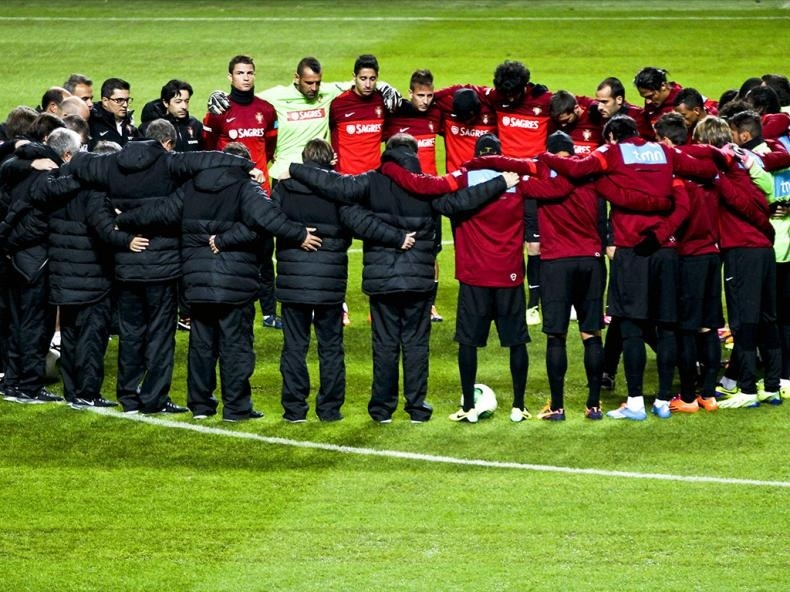 | Các thầy trò đội tuyển Bồ Đào Nha quyết tâm giành tấm vé vào World Cup 2013. |