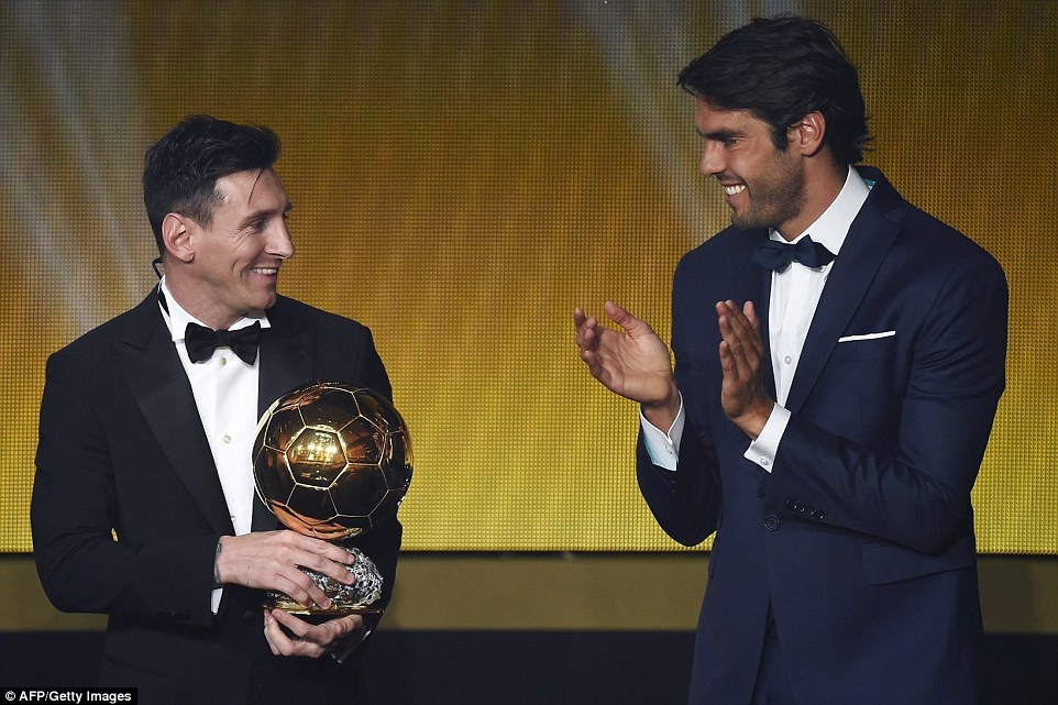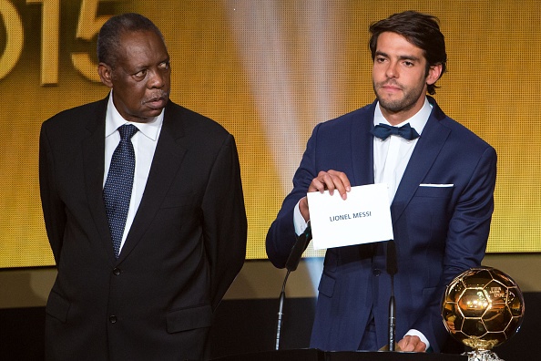 | Danh thủ Kaka vinh dự công bố chủ nhân Quả bóng vàng FIFA 2015. Siêu sao người Argentina, Lionel Messi giành 41,33% tổng phiếu bầu, bỏ xa Cristiano Ronaldo (27,76%) và Neymar (7,86%). |