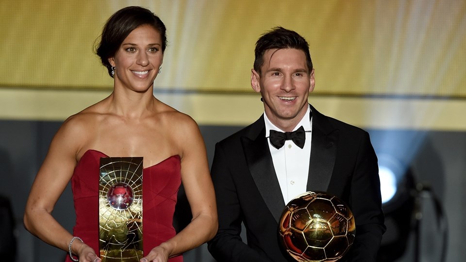 | Chủ nhân của hai danh hiệu cá nhân cao quý nhất năm, Lionel Messi và Carli Lloyd. |