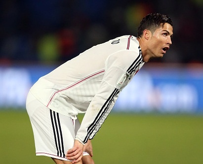 | Nét mặt khá căng thẳng của Ronaldo trong một tình huống đá phạt dành cho Real. |