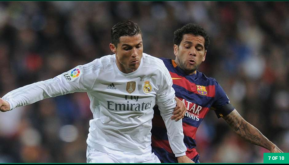 Real Madrid 0-4 Barcelona (21/11/2015): Thảm họa El Clasico của Real nói chung và Ronaldo nói riêng. Dấu ấn lớn nhất của siêu sao người Bồ là pha đánh nguội Dani Alves. |