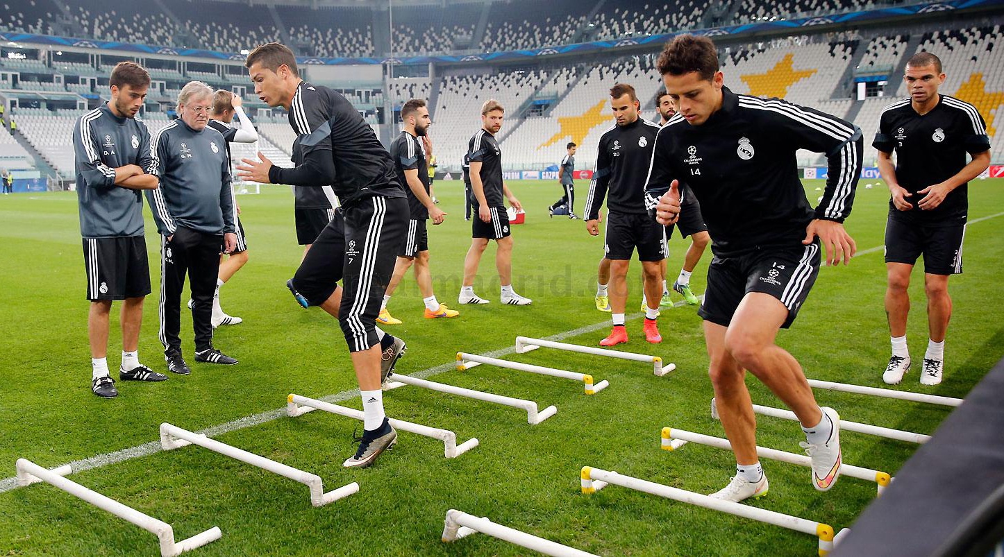 | Ronaldo và các đồng đội luyện tập buổi cuối cùng trên sân Juventus Arena trước khi bước vào trận bán kết lượt đi. |