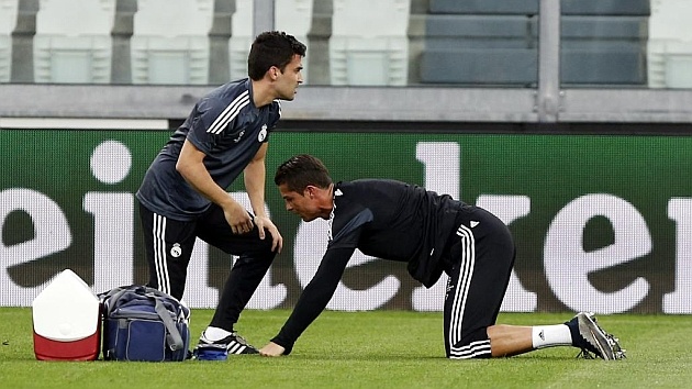 | Ronaldo tiếp tục tập luyện dưới sự giám sát chặt chẽ từ ông thầy Carlo Ancelotti và các nhân viên y tế. |
