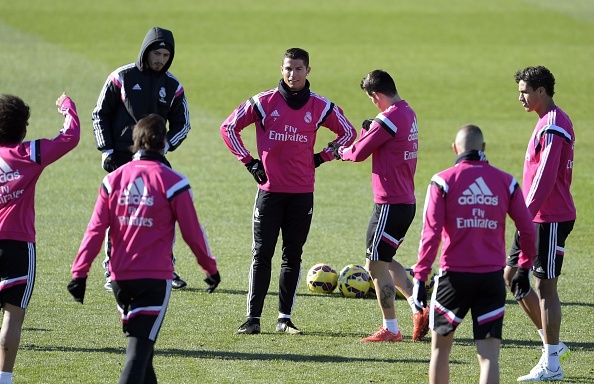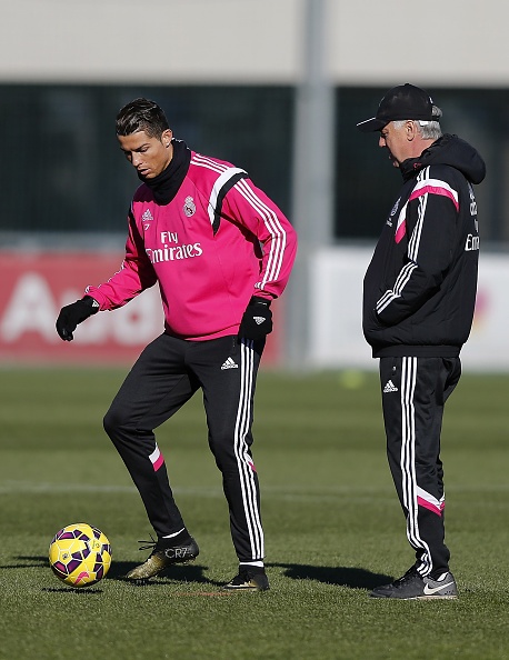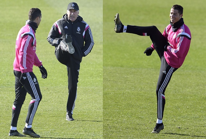 | Siêu sao người Bồ Đào Nha tập luyện chăm chỉ dưới sự giám sát của ông thầy Carlo Ancelotti. |
