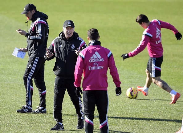| Cựu ngôi sao M.U chăm chú lắng nghe lời chỉ bảo của HLV Ancelotti. |