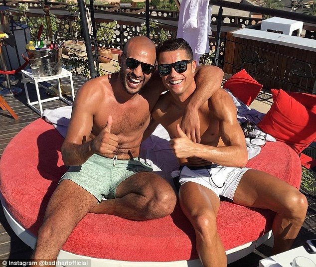 | Ronaldo giao lưu với võ sĩ Badr Hari tại Ma-rốc. Trông cử chỉ thân mật của hai người, đám bạn trêu chọc Ronaldo đang đi nghỉ tuần trăng mật với võ sĩ quyền cước 30 tuổi nước bản địa. |