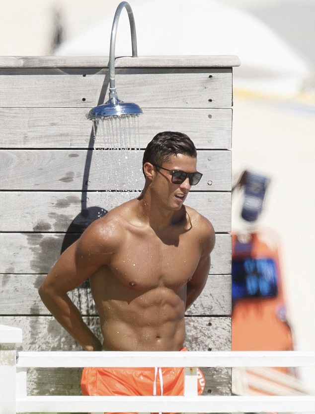 | Ngôi sao 30 tuổi khoe thân hình săn chắc với cơ bụng sáu múi khi lên bờ. |