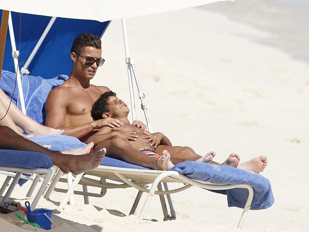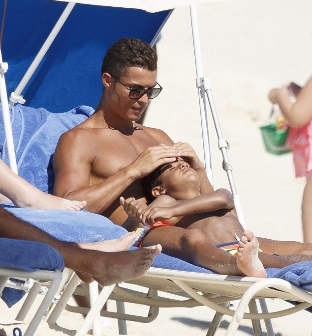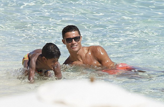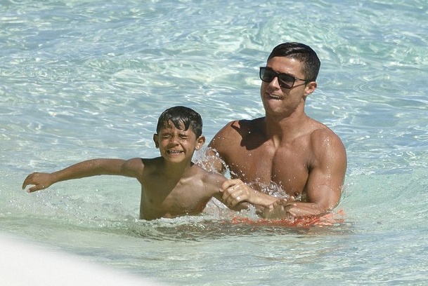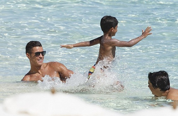 | Thảnh thơi sau khi hoàn tất nghĩa vụ quốc gia tại vòng loại EURO 2016, Cristiano Ronaldo đưa con trai đi du lịch tại Bahamas nhân dịp sinh nhật lần thứ 5 của cậu nhóc (17/6). |