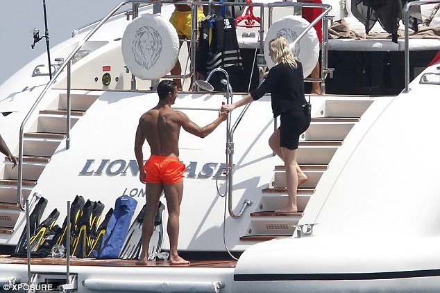 | Siêu sao người Bồ thân mật với một bóng hồng tóc vàng trên du thuyền. Kể từ ngày trở thành người tự do, Ronaldo vướng nhiều tin đồn tình cảm với hàng loạt các chân dài khác nhau. |