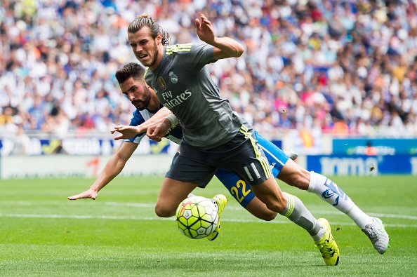16': Penalty cho Real Madrid. Alvaro phạm lỗi với Gareth Bale trong vòng cấm. Hậu vệ của Espanyol cũng nhận thẻ vàng trong tình huống này.