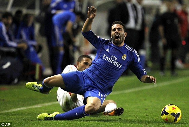 | Nacho Martinez đã phải nhận thẻ vàng sau pha phạm lỗi với Daniel Carvajal. |