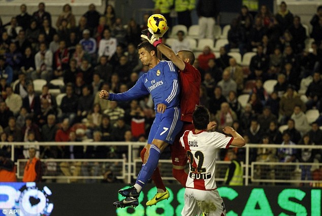 | Ronaldo thể hiện khả năng không chiến trong trận gặp Rayo Vallecano. |