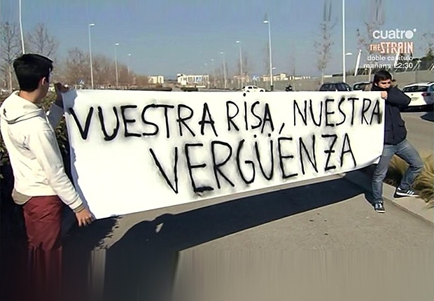 Chưa hết, 2 CĐV Real mới đây đã đến trung tâm huấn luyện Valdebebas với biểu ngữ phản đối cách hành xử của ngôi sao người Bồ Đào Nha: “Tiếng cười của bạn là sự xấu hổ của chúng tôi”.