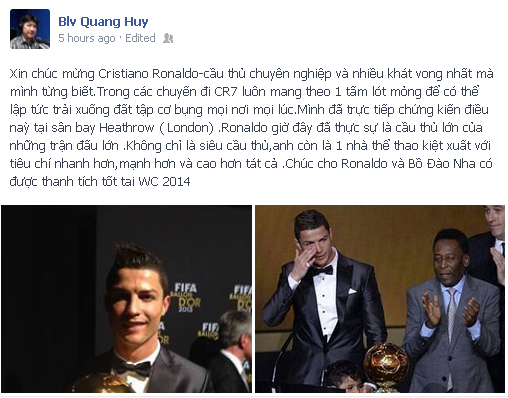 Tiết lộ trên trang cá nhân của BLV Quang Huy khiến nhiều người khâm phục Ronaldo hơn.