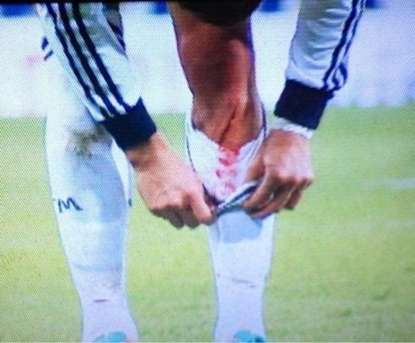 Trên sân cỏ, CR7 cũng luôn chơi với quyết tâm cao nhất cho dù chân đã đổ máu vì chấn thương.