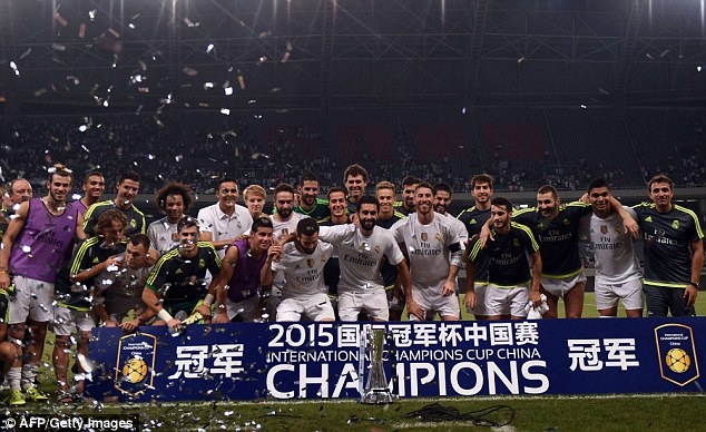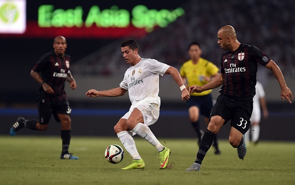 | Cristiano Ronaldo và đồng đội đã đánh bại AC Milan với tỷ số 10-9 sau loạt sút luân lưu để đoạt danh hiệu ICC 2015 tại Trung Quốc. |