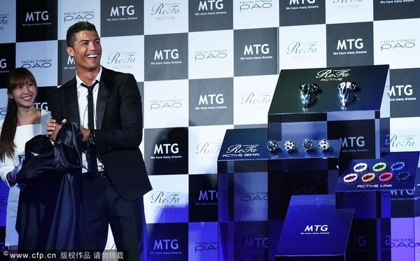 | MTG là một công ty chuyên sản xuất các mặt hàng cao cấp chuyên về chăm sóc nhan sắc và thể lực nổi tiếng tại Nhật Bản. Với sự đồng hành của Ronaldo, dự tính, dòng sản phẩm này sẽ gây được hiệu ứng tốt và đạt doanh thu tăng vọt trong năm nay. |