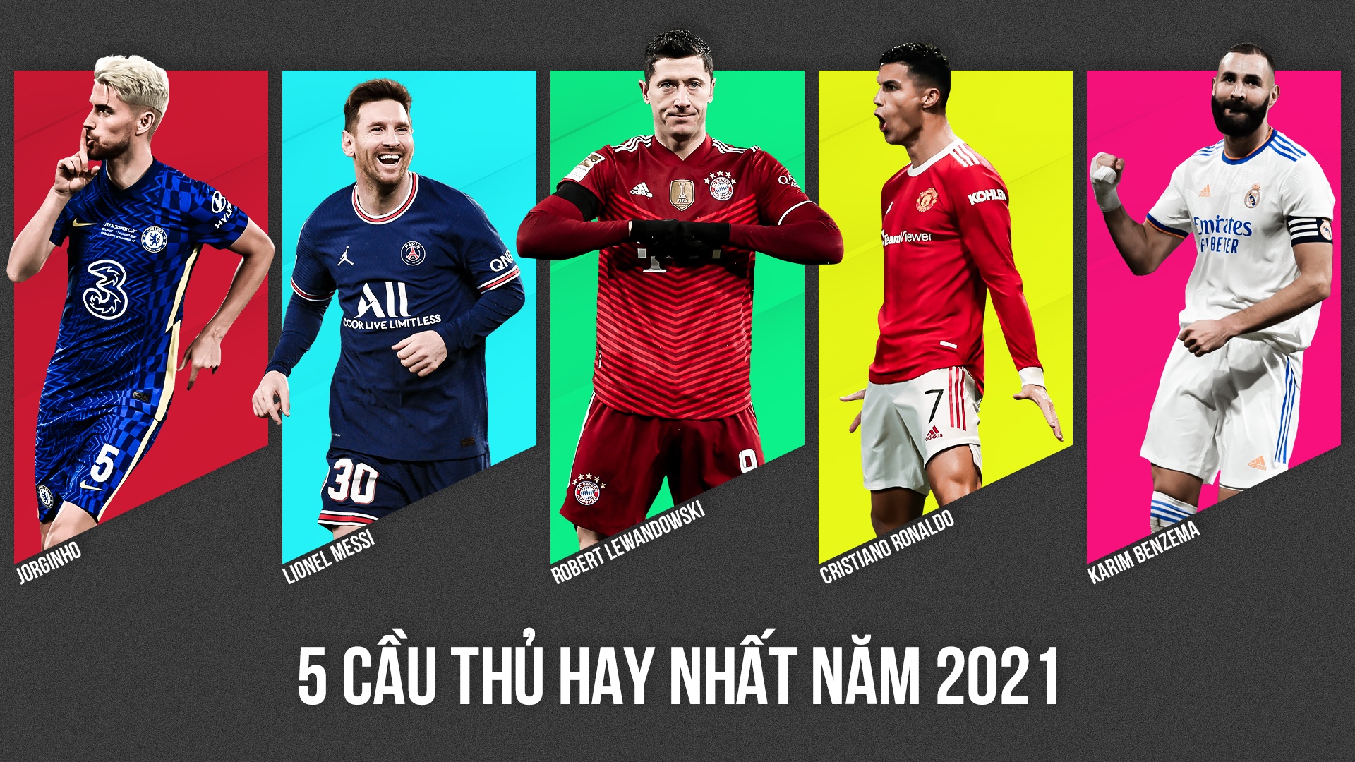 Danh sách 5 cầu thủ hay nhất trong năm 2021 vẫn có Cristiano Ronaldo và Lionel Messi. Một người đã 36 tuổi, người còn lại là 34 tuổi, nhưng duy trì phong độ kinh ngạc. Cả Ronaldo cùng Messi gia nhập CLB mới trong kỳ chuyển nhượng hè 2021 nhưng đều thích nghi nhanh và bắt đầu ghi dấu ấn tại PSG và MU.
