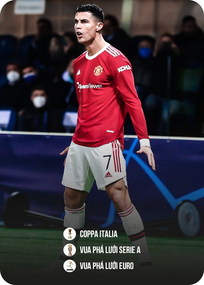 Siêu sao người Bồ Đào Nha duy trì hiệu suất ghi bàn đáng nể tại Serie A, nhưng cá nhân anh là không đủ để Juventus bảo vệ ngôi vương. Sau nửa chặng đường của mùa 2021/22, Man Utd thi đấu bất ổn, song Ronaldo đã ghi 14 bàn sau 20 trận ra sân. Trong số đó, CR7 ghi 6 bàn tại Champions League, đều là các pha lập công quan trọng để góp công lớn đưa "Quỷ đỏ" vào vòng 1/8.