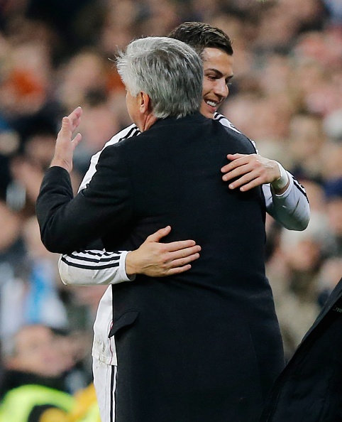 | Ngôi sao người Bồ Đào Nha chia vui với ông thầy Carlo Ancelotti. Cú hat-trick của anh cũng giúp Real Madrid nối dài kỷ lục 18 chiến thắng liên tiếp trên mọi mặt trận, ngang bằng kỷ lục mà Barcelona của Frank Rijkaard lập được mùa giải 2005/06. |