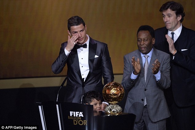 | Ronaldo bật khóc trong lễ trao giải Quả bóng vàng FIFA 2013. Ảnh: AFP/Getty Images. |