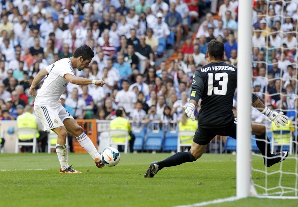 Sau hơn 10 phút có phần bị động, Real dần lấy lại thế trận. Theo đó những miếng đánh cũng được các học trò của HLV Ancelotti tung ra đều đặn hơn. Phút 24, Isco xẻ bóng ra chếch biên trái cho Ronaldo. Siêu sao người Bồ Đào Nha sau đó đi ngược vào khu vực trung lộ rồi tung ra cú sút điểm rất nhanh bằng chân phải buộc thủ thành Herrerin phải trổ tài cản phá.