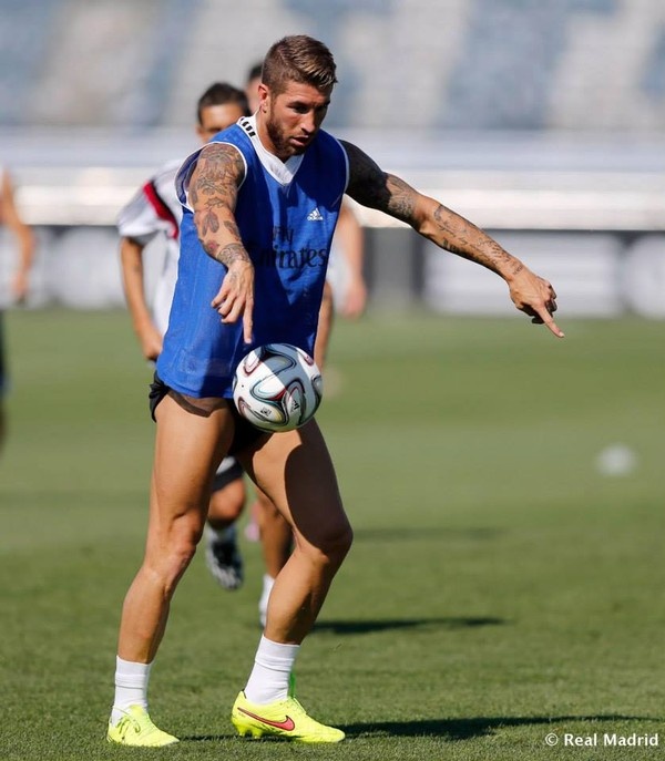 | Một đồng đội khác của Ronaldo tại CLB Real là Sergio Ramos cũng có sở thích khoe đùi khi tập luyện và thi đấu. |