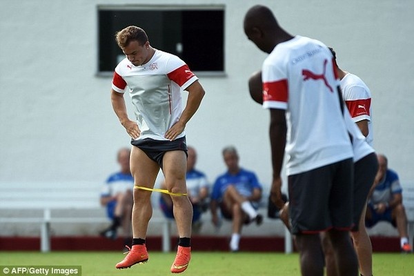 | Tuyển thủ người Thụy Sỹ Xherdan Shaqiri chỉ cao bằng Messi (1m69) nhưng sở hữu cặp đùi ấn tượng hơn nhiều. |