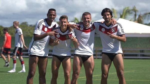 | Hình ảnh các tuyển thủ Đức khoe đùi khi cùng đội tuyển Đức chuẩn bị cho World Cup 2014 diễn ra tại Brazil. |