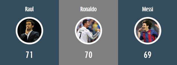 | Ba chân sút vĩ đại nhất trong lịch sử Champions League. Ảnh: Daily Mirror. |