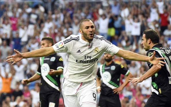 Niềm vui của trung phong người Pháp khi nổ tiếng súng lệnh đầu tiên cho Real ở mùa giải mới.