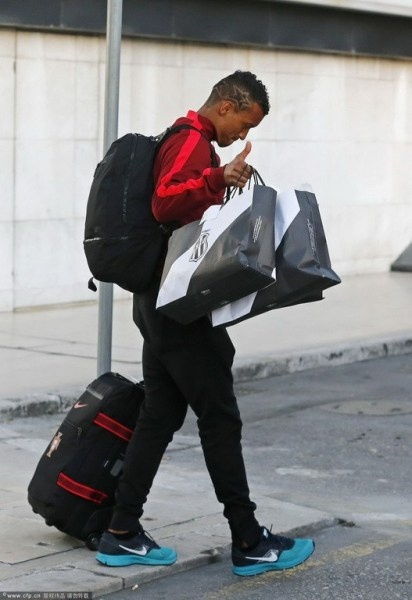 | Ngôi sao Bồ Đào Nha Nani tay xách nách mang. |