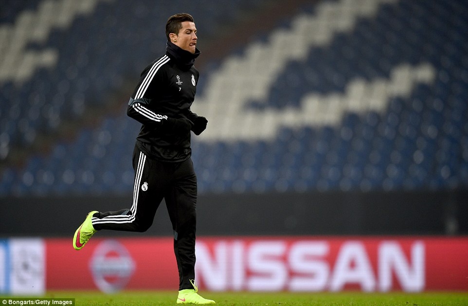 | Ronaldo tập nhẹ nhằm làm quen với mặt sân Veltins Arena. |