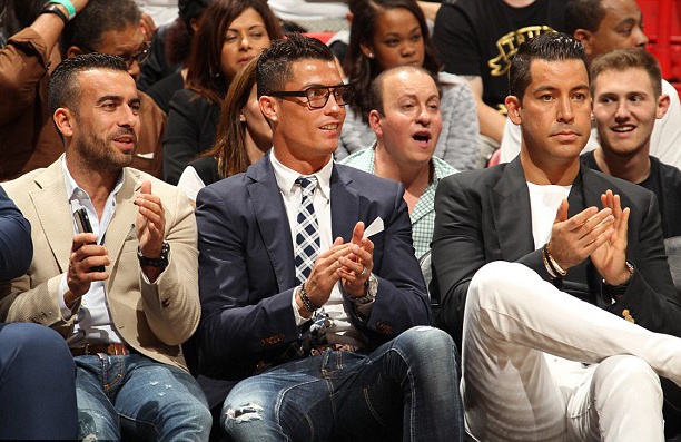 | Tháp tùng CR7 trong chuyến du hý đến xứ sở cờ hoa vẫn là người bạn thân, Ricky (bìa trái). |