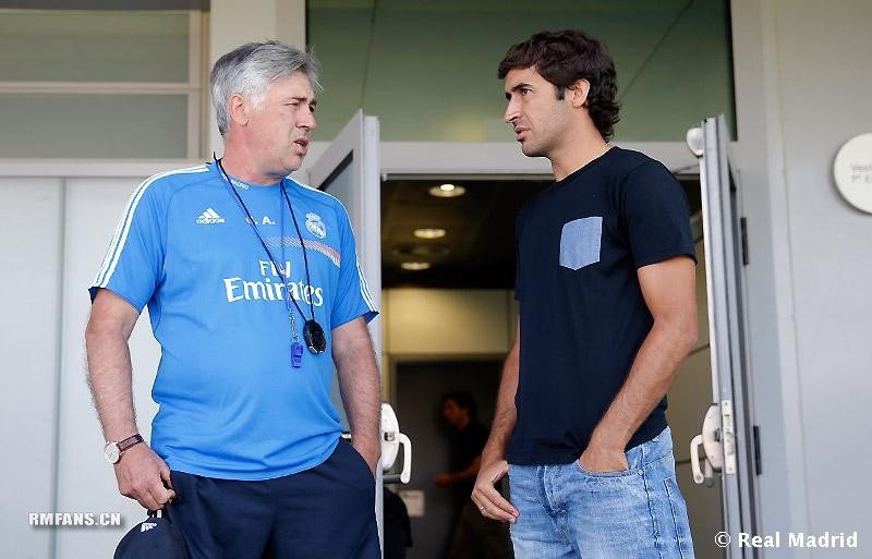 | Raul có buổi nói chuyện với HLV Ancelotti. |