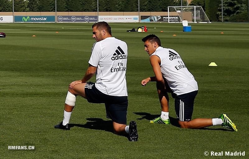 | Chân sút Benzema và tiền vệ Mesut Oezil là hai cầu thủ trụ cột của đội bóng Hoàng gia. |