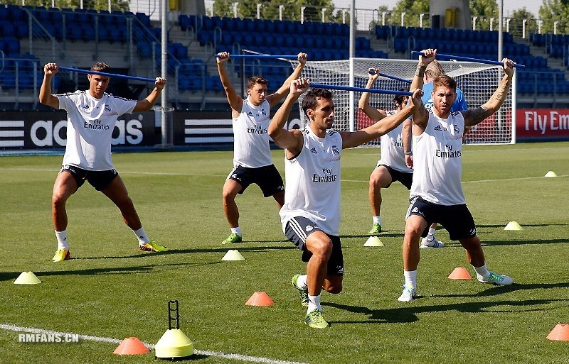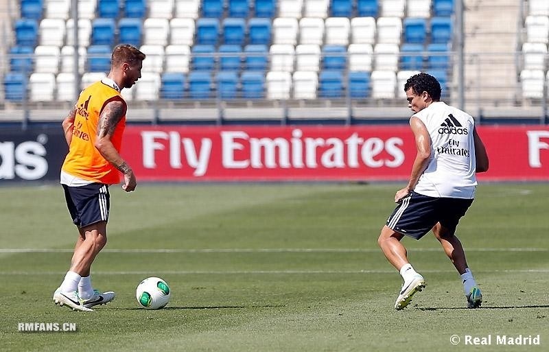 | Hiện tại, Cristiano Ronaldo là "số 7 huyền thoại mới" của sân Bernabeu. Ngôi sao người Bồ Đào Nha cùng đồng đội tích cực tập luyện cho trận gặp Raul. |