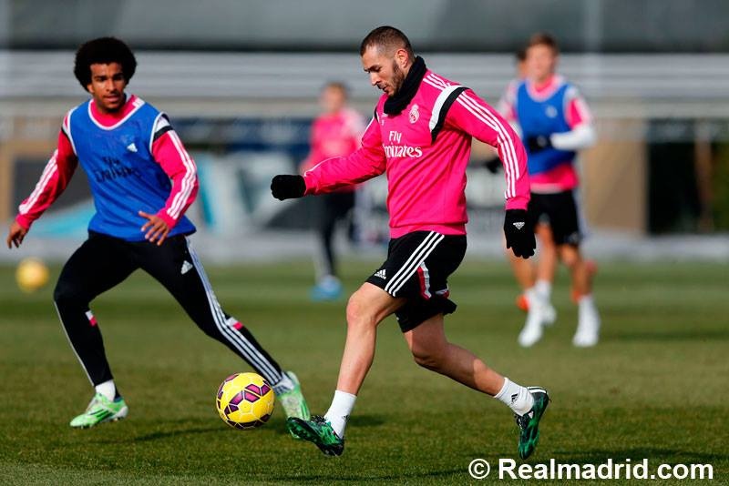 | Benzema nỗ lực tập luyện sau màn trình diễn nghèo nàn trong trận derby thành Madrid. |