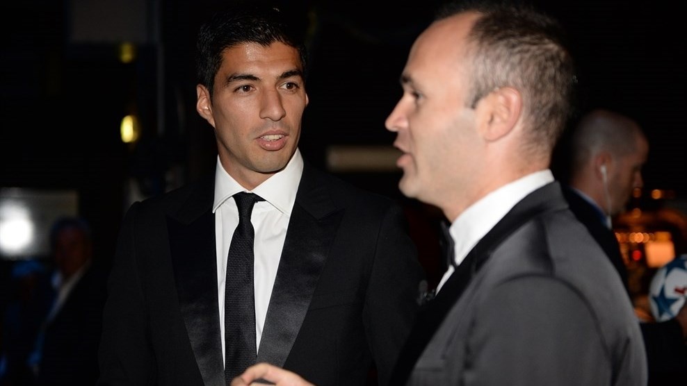Hai đồng đội của Lionel Messi, Luis Suarez và Iniesta có mặt tại buổi lễ. Suarez là ứng viên cho danh hiệu cầu thủ xuất sắc nhất châu Âu, nhưng không thắng được đồng đội Leo. Trong khi đó, Iniesta ở cương vị thủ quân của đội đương kim vô địch Champions League có mặt để trả lại cúp cho ban tổ chức trước khi mùa giải mới khởi tranh.