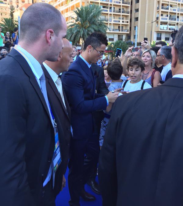 Cristiano Ronaldo luôn nhận được sự quan tâm rất lớn của người hâm mộ và giới truyền thông. Anh nhiệt tình ký tặng fan khi đến buổi lễ bốc thăm chia bảng Champions League mùa này.