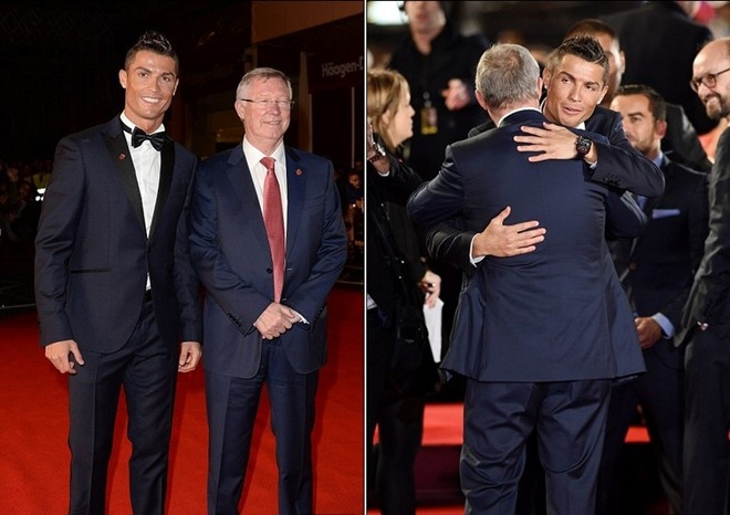 | Ronaldo gặp lại thầy cũ Alex Ferguson trong buổi lễ giới thiệu. Ảnh: Daily Mail. |