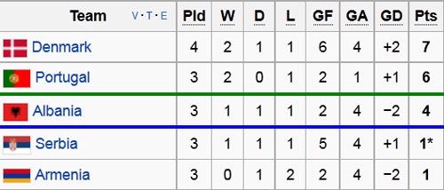| Tuy nhiên, ĐT Armenia cho thấy không phải là đối thủ dễ bắt nạt với thành tích thắng 1 và hòa 1 trước khi bước vào trận gặp Bồ Đào Nha. Tiền vệ Moutinho của đội chủ nhà rất vất vả trong pha tranh bóng với Karlen Mkrtchyan bên phía đối phương. |
