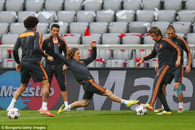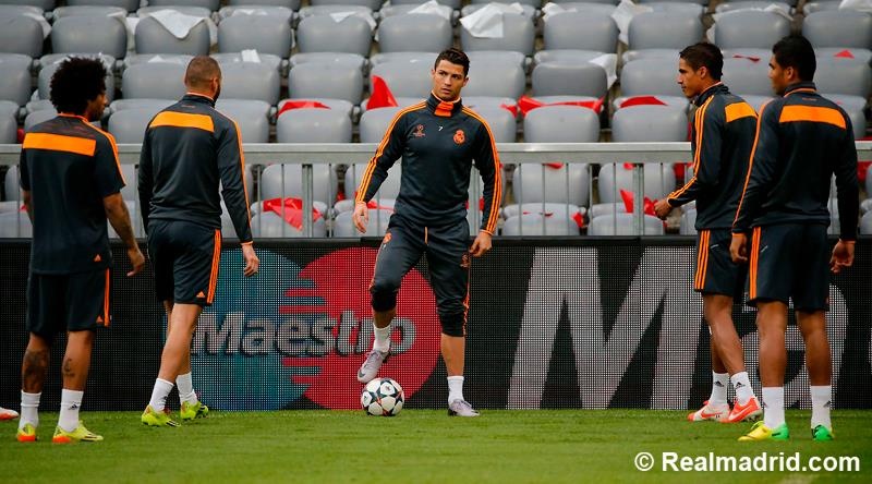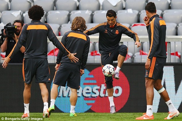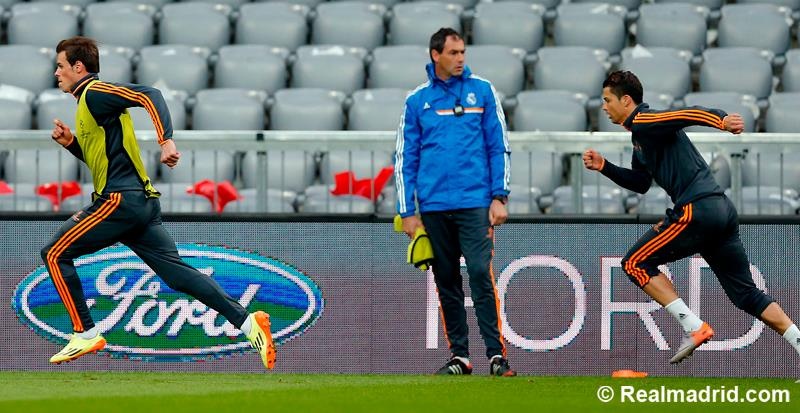 Trong buổi tập của Real vào chiều qua, hai ngôi sao Cris Ronaldo và Gareth Bale tỏ ra rất thoải mái, háo hức giúp Kền kền loại Bayern khỏi bán kết Champions League.